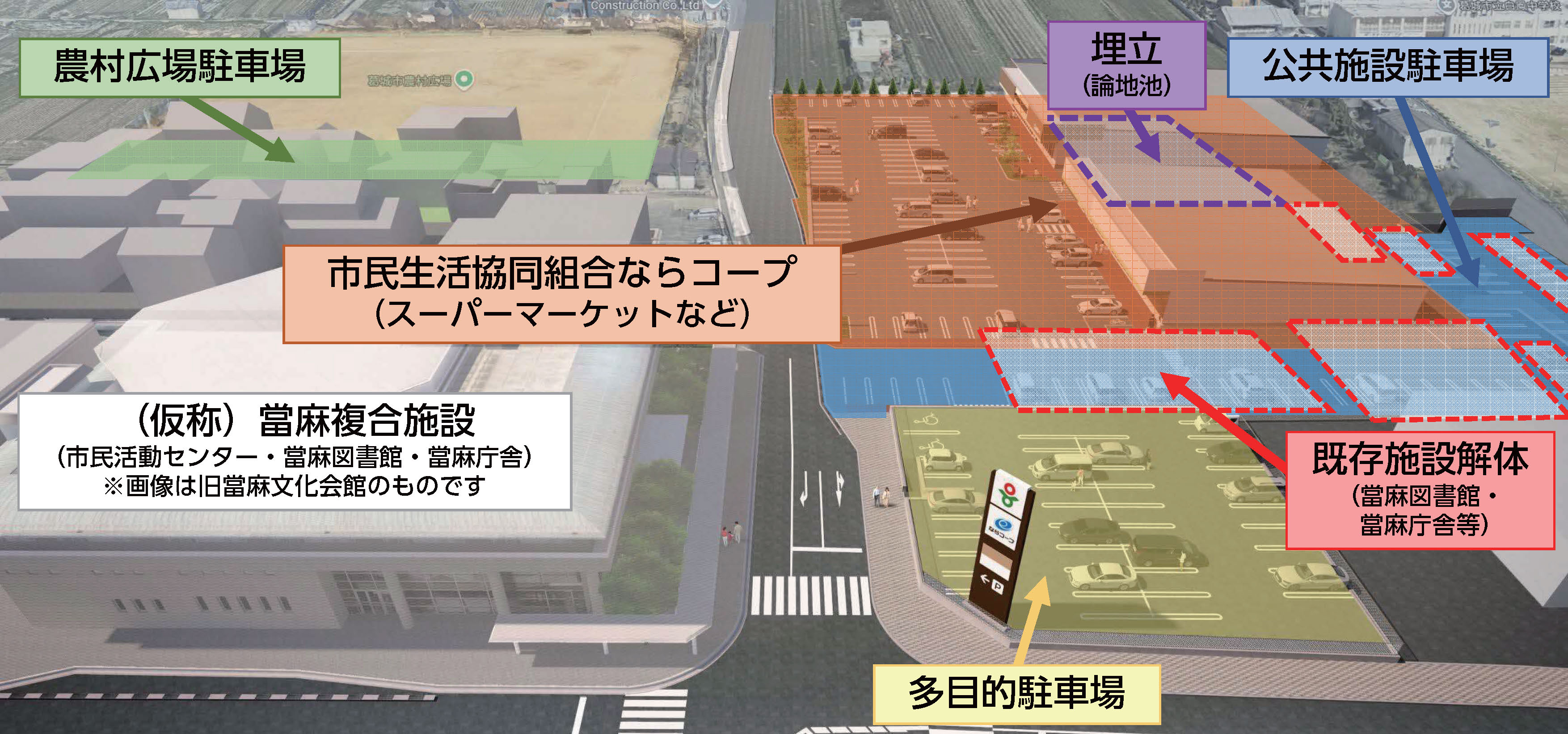 葛城市の當麻複合施設周辺エリア活用事業、令和10年にならコープが商業施設開業