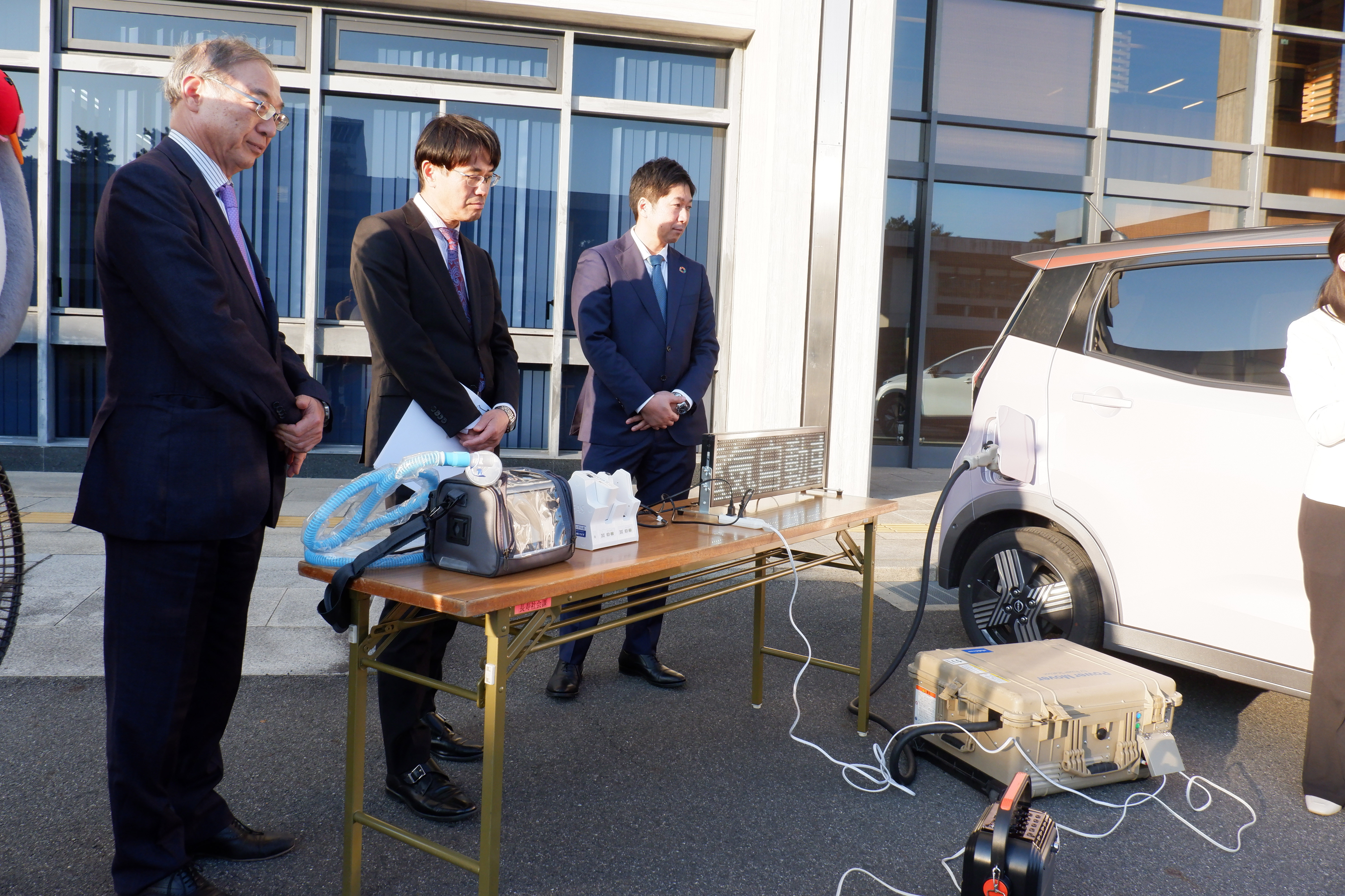 EV車で福祉避難所へ電力供給で県、日産、奈良日産が災害協定