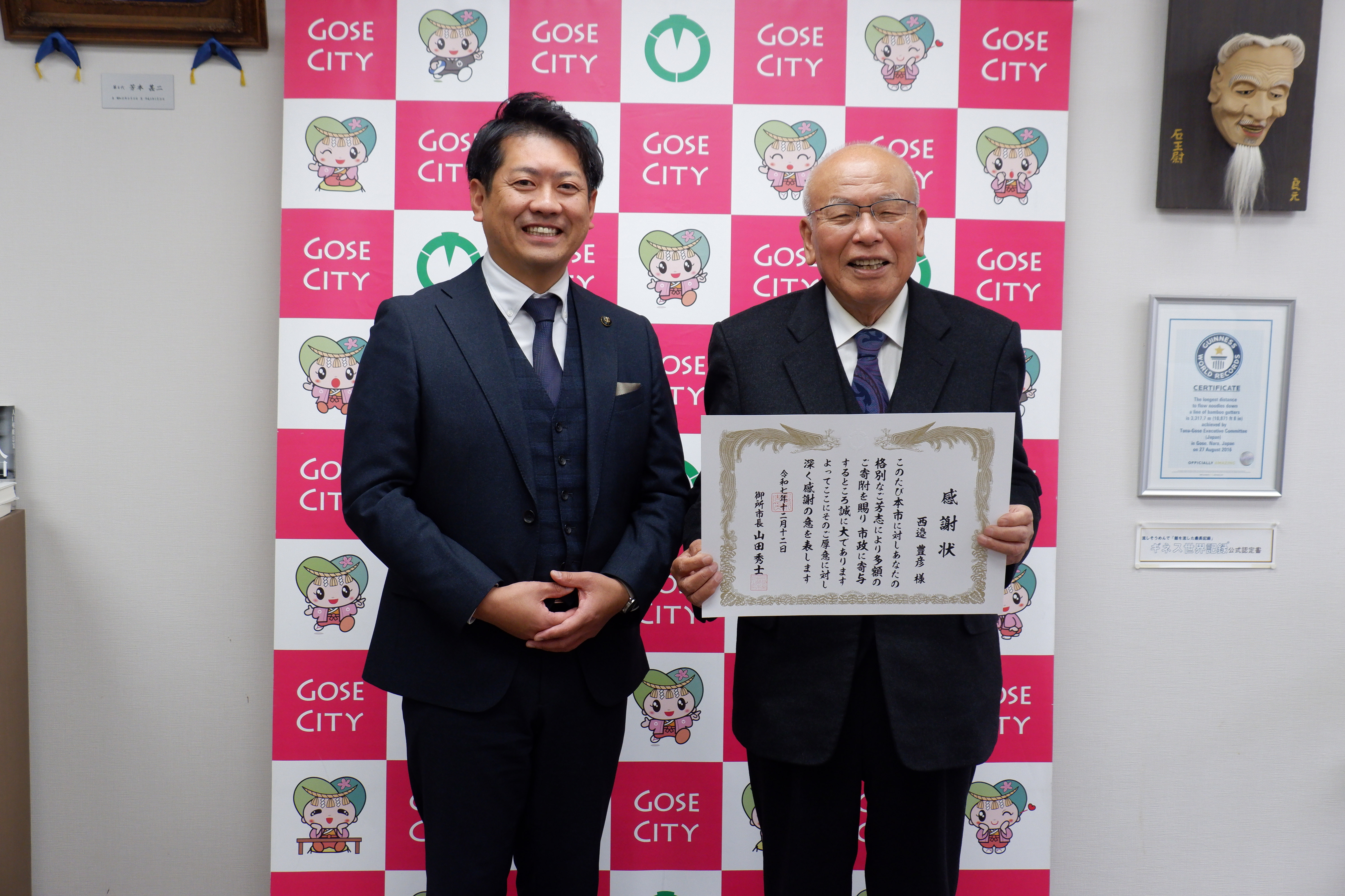 御所市に過去最高額3億円寄付、ニシベケミカル創業者の西邊さん