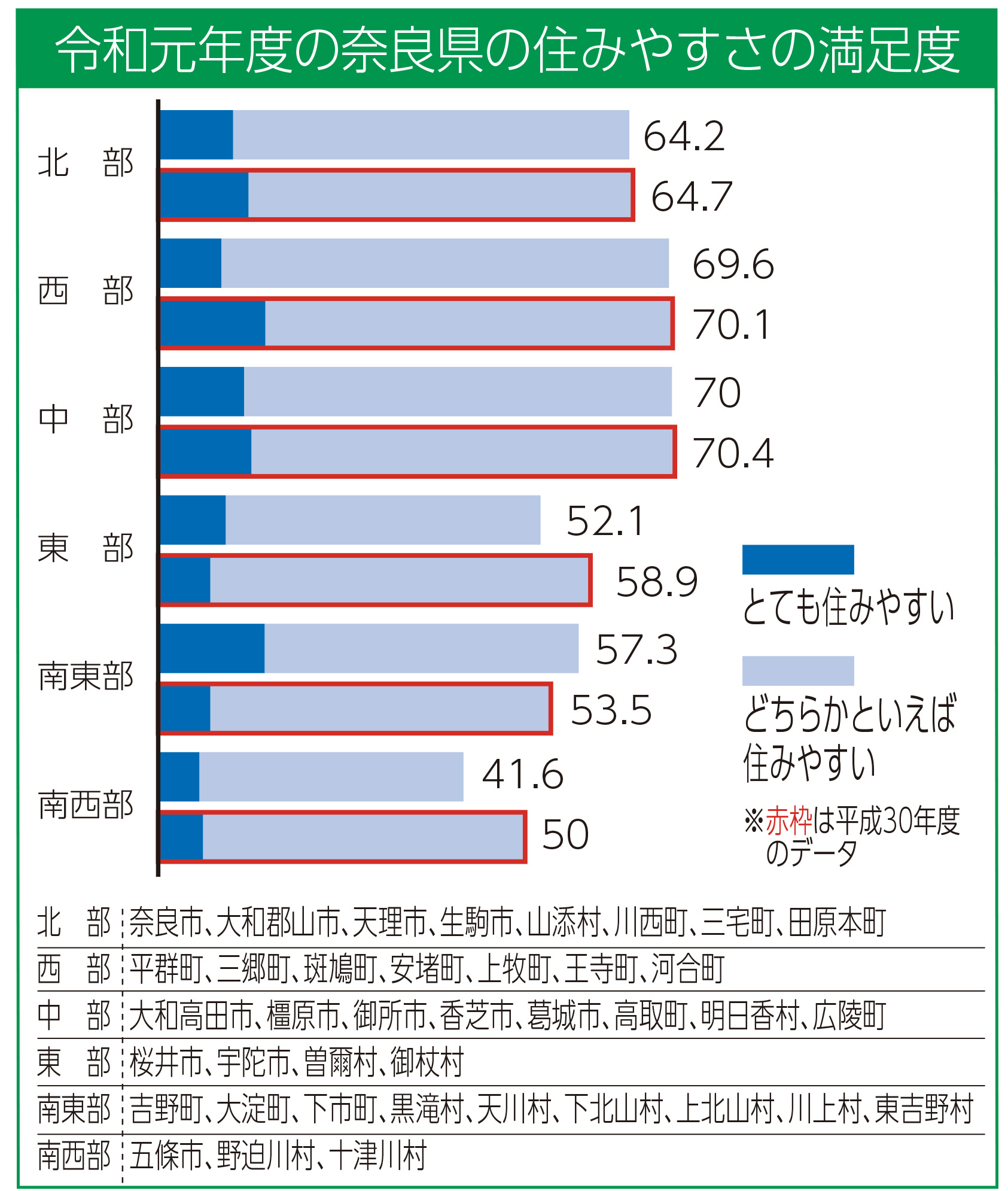 住みやすさの評価、満足度 県中部と南西部約30ポイントもの格差
