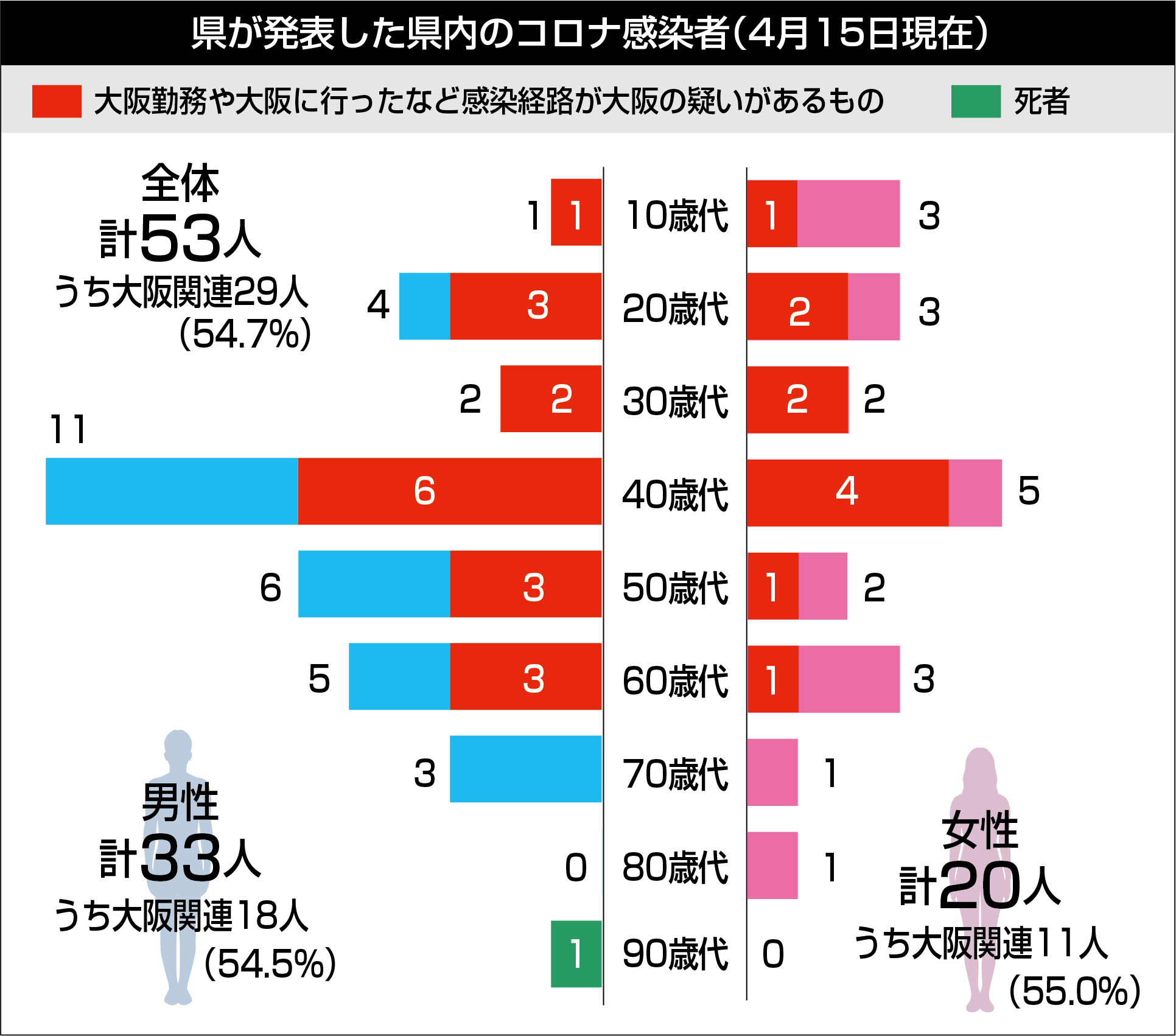 県内感染54.7%が大阪起点 20~40歳代で顕著