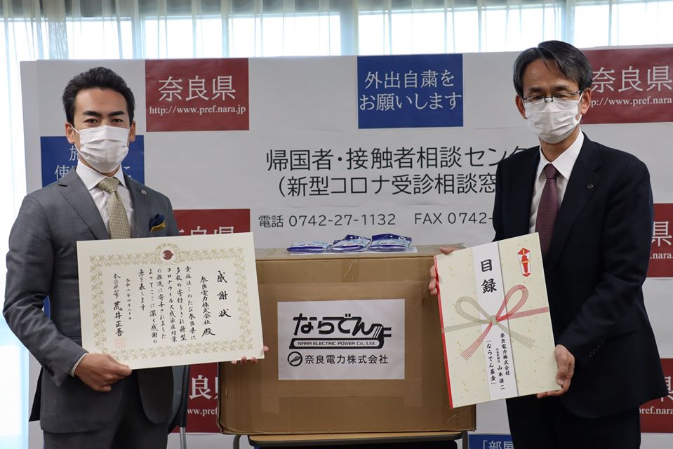 奈良電力が医療従事者や県内妊婦らに向けマスク計15万枚を寄贈