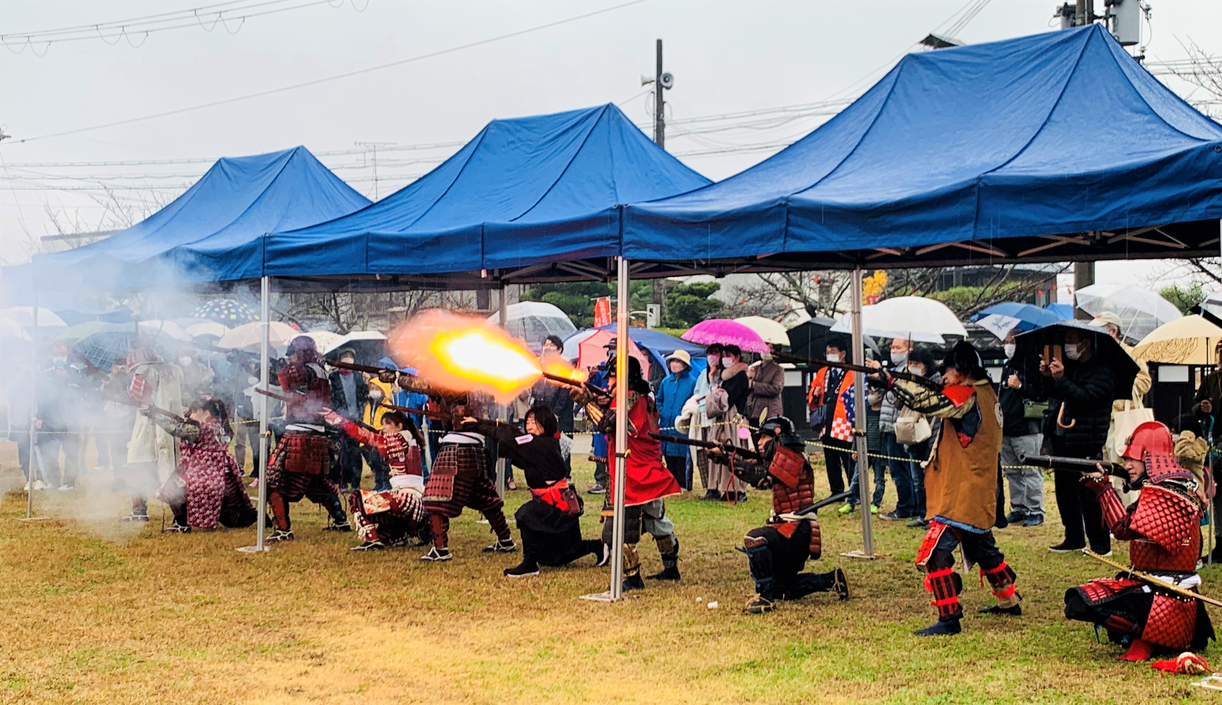 見物客の度肝抜く、火縄銃実演 第34回たかとり城まつり