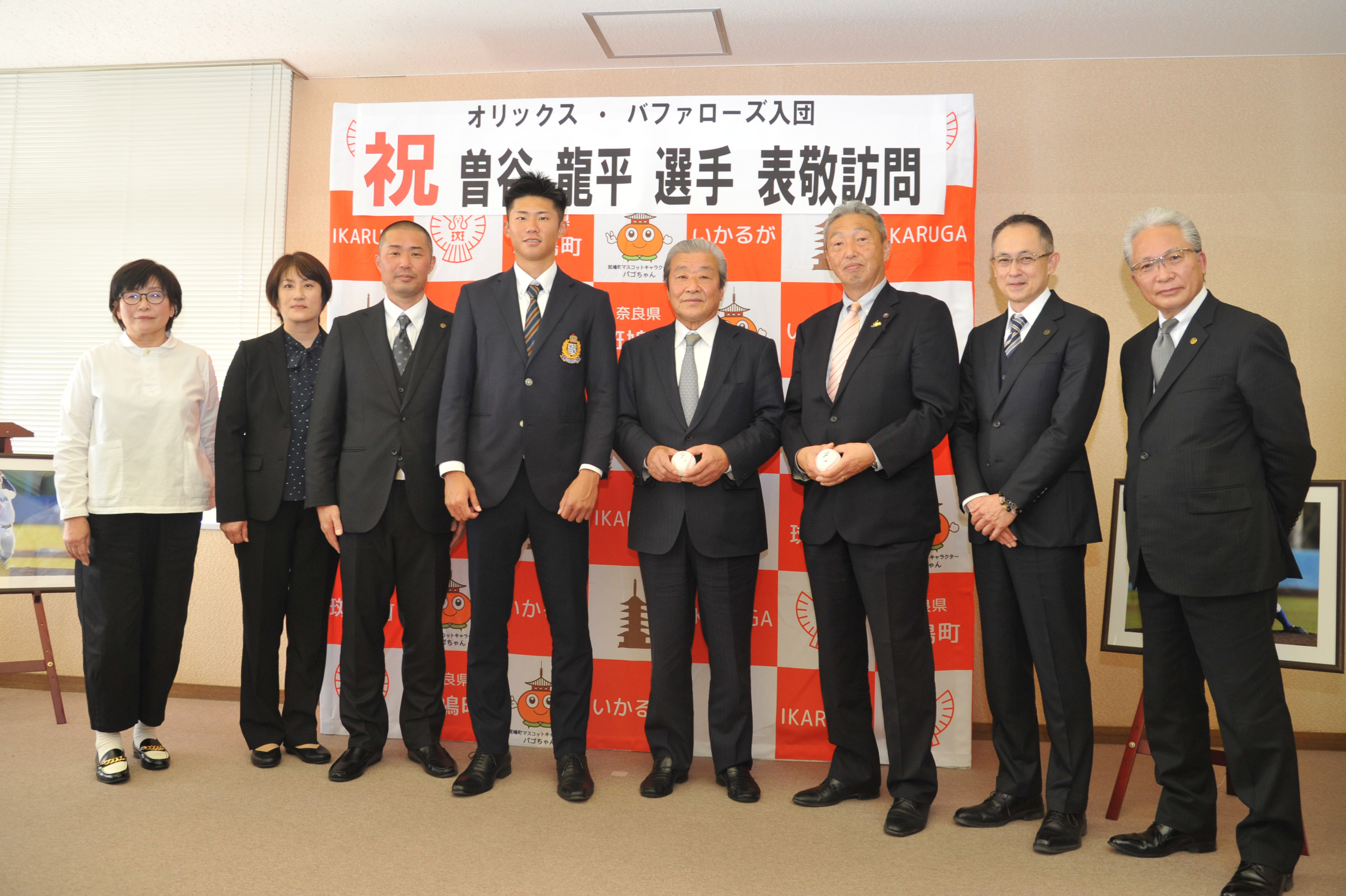 夢を実現、オリックス・バファローズに入団、曽谷投手が故郷の斑鳩町表敬